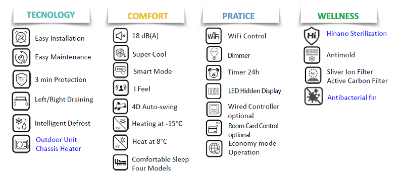 Ovaj klima uređaj može da zagreje sobu čak i kada je spoljna temperatura -20°C. Grejanje sa klima uređajem je energetski efikasno i brzo, tako da ćete se osećati toplo i udobno čak i u njahladnijim zimskim danima.